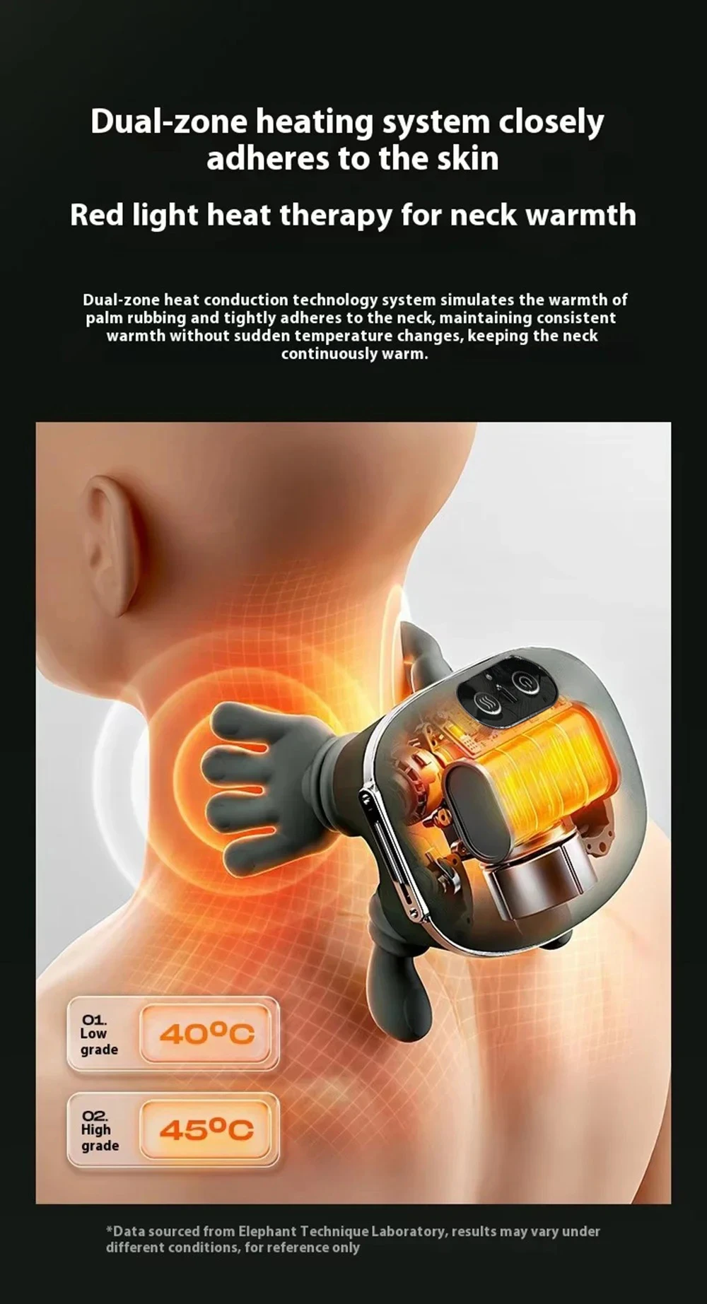 The built-in soothing heat therapy gently warms muscles, improves blood circulation, and helps melt away tension. With 2 adjustable heat levels, you can easily customize the warmth for maximum comfort and relaxation.